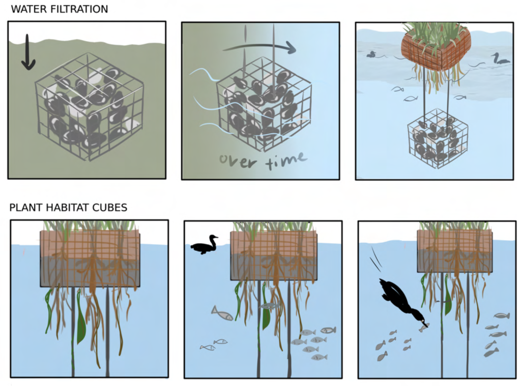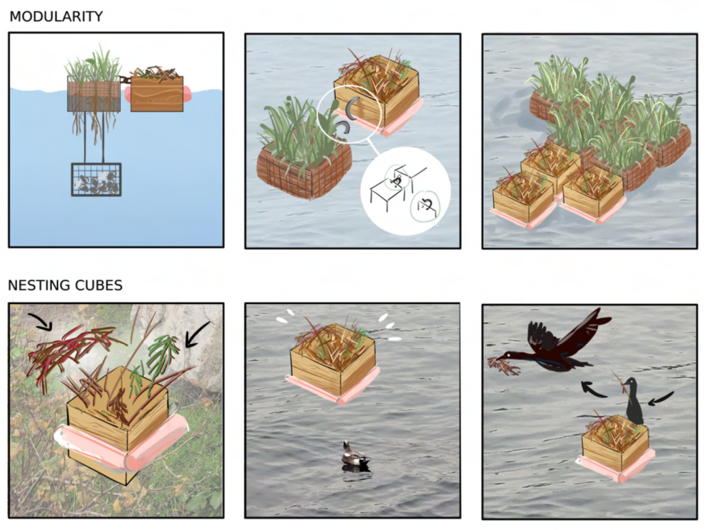 Design a caring relationship with or for cormorants, their habitats, or their more-than-human relations. In designing for care and relationships, each group will iteratively explore actions and objects that could support cormorants in this context. Build upon your skills centering truth to materials, and to design functional objects with consideration for affordances and semantics. Consider the role of time—whether actions or objects might be temporary, semi-permanent, seasonal, or infrequent.