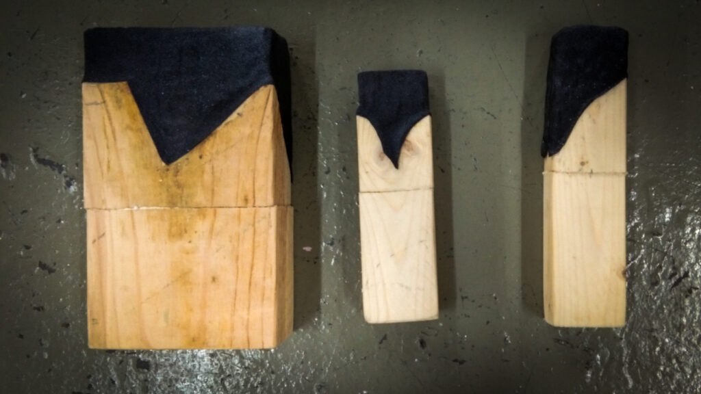 Three types of wooden blocks were selected to be used. They were then marked, cut, and carved to emulate parts of them burnt off. High Impact Polystyrene (HIPS) plastic sheets were used to vacuum form the wooden molds. The class was oriented by the people from Vaquform on how to use their desktop thermoforming device and the best practices involved in designing objects to be made with such process.