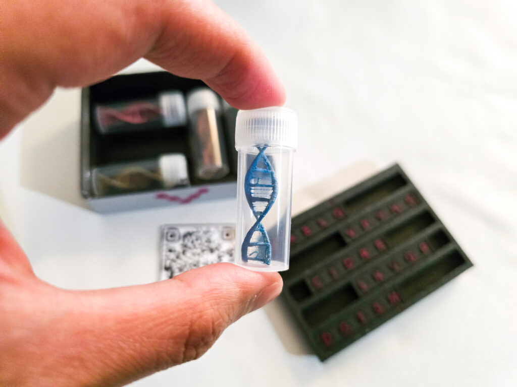 Its appearance is based off a flow cell in a genome sequencer machine from lab photos used as reference.